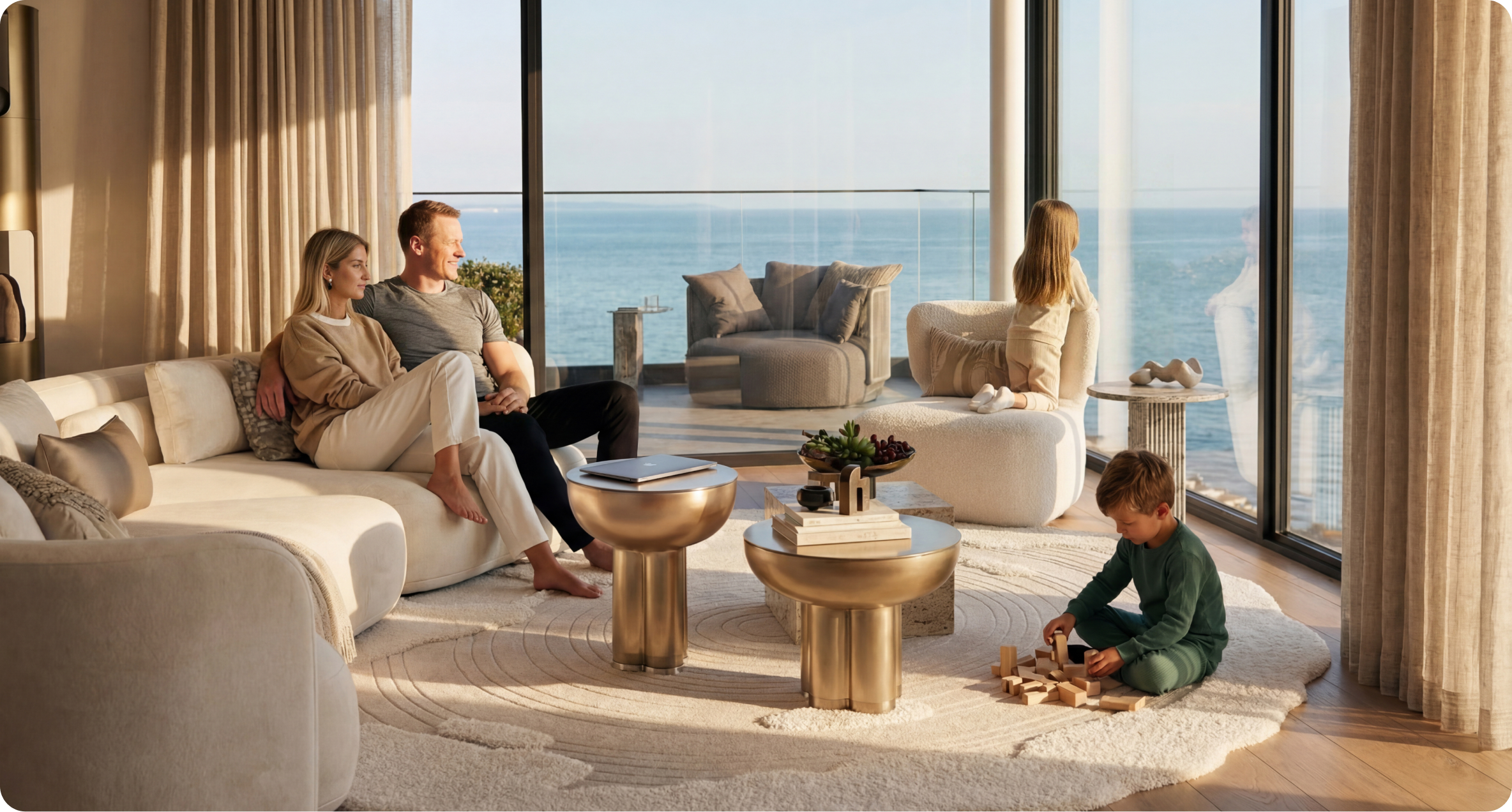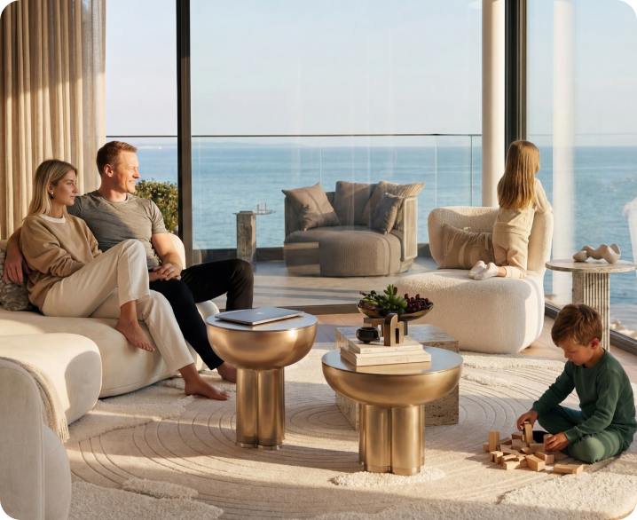 Kuni 3,8-meetriste lagede ja kõrguvate aknapindade kooslus täidab ruumi loomuliku valgusega, koidust hämarani. Tänu asukohale kõrgel rannikuäärsel nõlval avanevad Sulle kordumatud pildid lainetest, vanalinnast ja südalinna siluetist.