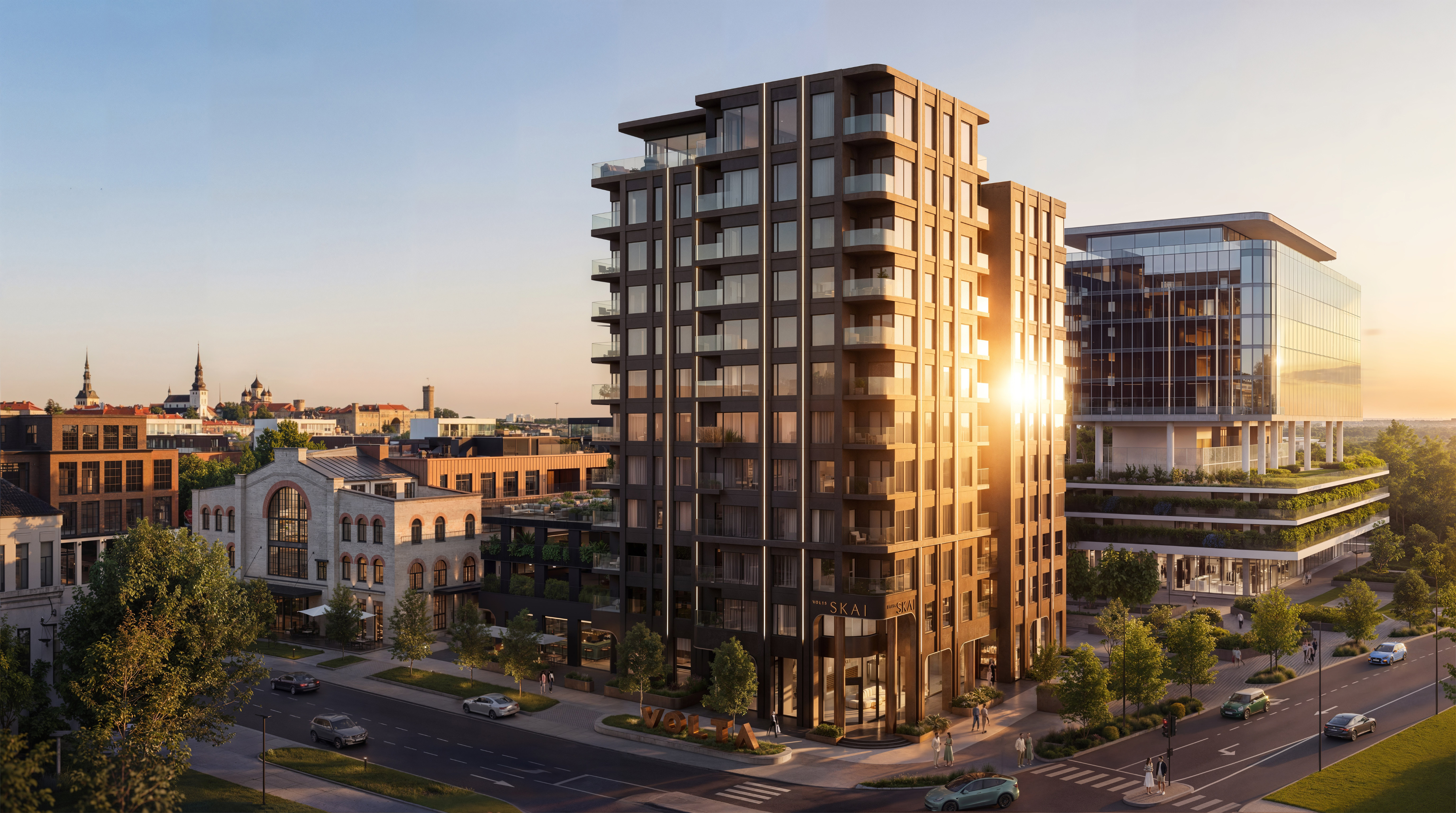 Volta kvartali uus maamärk – 12-korruseline modernse arhitektuuriga kõrghoonete duo pealinna ihaldusväärseimal aadressil Volta kvartalis.